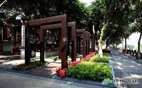 該工程起于濱江路孝順路口,止于國窖長江大橋,是瀘州市“兩江四岸”規(guī)劃建設(shè)的示范性工程。工程的設(shè)計不僅體現(xiàn)出了自然與生態(tài)融于一體的園林理念,注重對原生態(tài)環(huán)境的保護,節(jié)能環(huán)保材料的應(yīng)用及后期養(yǎng)護的簡單方便等,更重要的,將瀘州深厚的歷史文化元素融入其中,讓人們在欣賞現(xiàn)代美景的同時,可以穿過歷史的塵煙,記住這座城市的一路變遷,品味時光的流轉(zhuǎn)。一處地標式的城市景觀,將“醉美瀘州”展現(xiàn)得琳漓盡致。