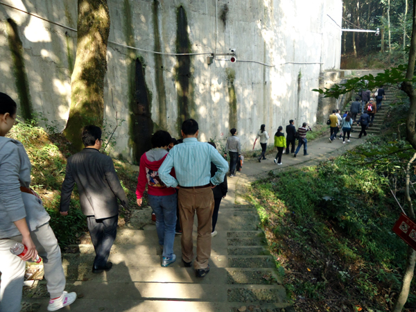一路上,臺(tái)階時(shí)高時(shí)低,地勢(shì)時(shí)陡時(shí)緩,很快,就有人喊著走不動(dòng)了,而有人則依然健步如飛……大隊(duì)人馬很快分散成了一條長(zhǎng)長(zhǎng)的隊(duì)伍,在蜿蜒的山路中向著高處奮勇攀登!