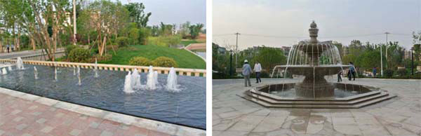 受中國傳統(tǒng)文化的影響,中國人喜歡靜觀或觀靜,現(xiàn)代小區(qū)水景設計一方面可以滿足人們對居住環(huán)境安靜舒適的需求,另一方面通過適宜小區(qū)環(huán)境尺度的噴泉、涌泉、疊泉等動水,增加小區(qū)環(huán)境的生氣及靈動性,給人們以感觀的刺激,用水的動態(tài)之美與水聲之美讓身處鬧市之郊的居民體會“山水有清音”的意境與自然美景。