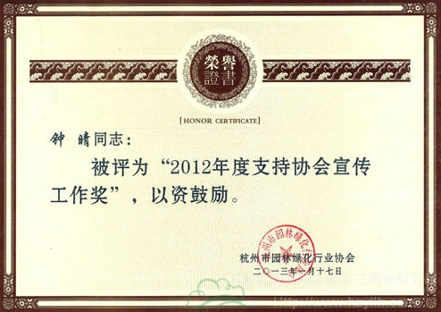 鐘晴、梁夕雯兩位同志榮獲杭州市園林綠化行業(yè)協(xié)會(huì)2012年度宣傳工作先進(jìn)個(gè)人稱號(hào)
