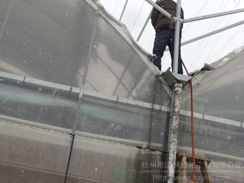 2月19日,一場暴雪突然而至,紛紛飄落的雪花,給了人們一個措手不及。厚厚的積雪給杭州市園林綠化工程有限公司各苗木基地的設(shè)施及露地花木造成了極大威脅。為了減少損失,基地人員在部門領(lǐng)導(dǎo)的帶領(lǐng)下開展了積極的抗雪工作。