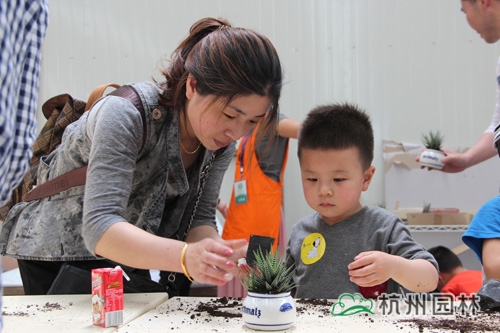 參觀完室內賣場,所有小朋友和家長們來到了親子操作間,這里,有為他們準備好的多肉植物、盆器、營養(yǎng)土、裝飾品等??吹竭@些漂亮可愛的物品,大家都表現出了極大的興趣,在園藝師的帶領下,迫不及待地開始了組盆活動??鞓返臅r光過得真快,經過小朋友們和父母通力合作,拼出了一件件漂亮的小盆栽,心滿意足地帶回家去。