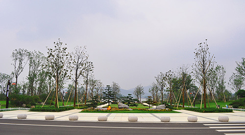 云龍湖珠山景區(qū)景觀綠化工程總占地面積80公頃,全長3.6公里,施工面積63萬余平米,施工內容主要包括土方造型、綠化種植、廣場園路鋪裝、道教主題廣場、沉水廊道、木棧道、景石營造、古建筑等。設計主題突出"徐州新天地和珠山新印象",總體風格體現"人文、生態(tài)、活力",共分為濱湖主入口廣場區(qū)、水杉林游覽區(qū)、濱湖休閑景觀區(qū)、水生植物游覽區(qū)等9個功能區(qū)及觀魚沉水廊道、道教主題廣場、水杉林大道、沿湖木質棧道等多個景觀節(jié)點。工程施工共分三個標段,其中,杭州市園林綠化股份有限公司承建的是二標段。