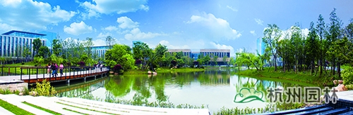 華為杭州二期生產(chǎn)基地景觀工程位于杭州市濱江區(qū)。走進(jìn)工程現(xiàn)場,只見一棵棵銀杏、香樟、桂花生長得郁郁蔥蔥,昭示著無限的生機(jī)與活力;風(fēng)格多樣的鋪裝,相映成趣,蜿蜒延伸;波光粼粼的人工湖中,幾只黑天鵝悠閑地游來游去,是風(fēng)景的主角;色彩繽紛的黃色、白色、粉色花朵,營造出夏日的花海景觀……不是公園勝似公園的園林美景,營造出一個(gè)郊外原野般的自然空間。