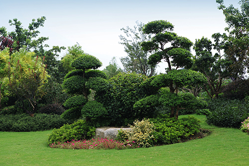 在項(xiàng)目主入口、次入口、中心景觀及一些重要景觀節(jié)點(diǎn),黑松、女貞、水蠟、五針?biāo)伞⒓t花檵木、紫薇等造型樹(shù)木,宛如萬(wàn)綠叢中的一點(diǎn)“紅”,彰顯出獨(dú)特的氣韻與品味,起到畫(huà)龍點(diǎn)晴的效果。