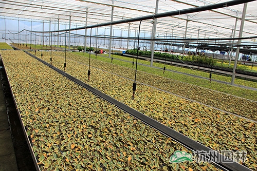 杭州畫境種業(yè)有限公司徑山基地基礎(chǔ)建設(shè)已于2014年基本完工,包括蔭棚地塊建設(shè)、基質(zhì)攪拌、辦公室、倉庫等,其中,新建的溫室大棚已全面投入使用,由公司自行組培的16萬棵火焰南天竹也進(jìn)入了煉苗階段,畫境種業(yè)的員工和工人們一起,通力合作,爭(zhēng)取以最高的效率完成煉苗工作,總經(jīng)理黃民強(qiáng)也親臨現(xiàn)場(chǎng),給大家指導(dǎo)與支持。在領(lǐng)導(dǎo)的關(guān)心下,大家信心倍增,計(jì)劃在一周內(nèi)完成全部煉苗工作?;鹧婺咸熘?,是公司組培研發(fā)生產(chǎn)的新品種,它植株低矮,枝葉密集;幼葉及冬季葉亮紅色至紫紅色,初秋葉變紅色,比南天竹紅色葉深,變色期早;喜溫暖濕潤、通風(fēng)良好的半陰環(huán)境,較耐寒,生長較快,在園林景觀中的應(yīng)用比較廣泛。