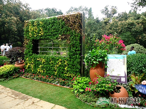 走進(jìn)畫境園,只見主入口左側(cè)種植著兩株一高一矮的厚皮香樹,郭昌如笑著說(shuō),“這兩棵厚皮香寓意的是兩個(gè)萬(wàn)分自豪的森林衛(wèi)士——熊大和熊二,你看,熊二還滿臉熱情地向游人不停地招手示意呢。”主入口右側(cè)是一面立體綠植墻,所用的植物主要為黃金絡(luò)石、金寶石冬青、小葉梔子花、金邊黃楊等?!傲Ⅲw綠植墻是立體綠化的主要形式,畫境?青山湖花園中心推出的這款立體綠植墻產(chǎn)品,可以根據(jù)客戶需要,結(jié)合氣候、溫度、濕度、色彩等綜合條件,選配四季長(zhǎng)綠或色彩豐富的植物,隨時(shí)在人們想要的地方構(gòu)建出一個(gè)貼近自然又超脫自然的生活環(huán)境,可謂是簡(jiǎn)單又方便?!惫缃榻B道。立體綠墻的兩側(cè),隨意地散落著一些紅陶罐,與金寶石冬青、龜甲冬青等精品球形植物,三角梅、月季、常春花、雞冠花等花卉,紫葉狼尾草、晨光芒、矮蒲葦?shù)扔^賞草混搭,營(yíng)造出一種溫暖、和煦的庭院景觀?!叭绻丫G植墻看成是城市的建筑,此景則喻意美麗杭城的繁華一角?!惫缪a(bǔ)充說(shuō)。綠植墻的中間還別出心裁地設(shè)置了一扇窗戶,透過(guò)它,園內(nèi)的美景已隱約可見。
