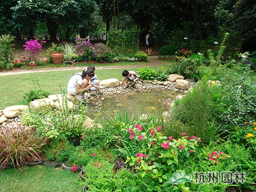 走進(jìn)園內(nèi),蜿蜒的溪流和溪岸邊的景致野趣妙生,一下子撲入視野,清澈的溪水、光滑的卵石、可愛的小蝌蚪,與岸邊的銀邊菖蒲、水生鳶尾、花葉美人蕉、花葉蘆竹等水生植物一起,營(yíng)造出生態(tài)、自然的河流景觀?!斑@條溪流,其實(shí)是我們杭州的母親河——錢塘江的縮影,通過(guò)這條溪流的營(yíng)造,我們想呼吁更多的人保護(hù)生態(tài)、愛護(hù)環(huán)境,讓我們的母親河永遠(yuǎn)干凈、清澈。”郭昌如簡(jiǎn)短的話語(yǔ)中,透露出的是一名園林人渴望更多人關(guān)注水生態(tài)環(huán)境的殷殷期盼。