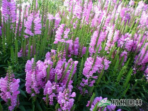 假龍頭,莖叢生而直立,四棱形,株高可達(dá)0.8米。單葉對(duì)生,披針形,亮綠色,邊緣具鋸齒。花色淡紫紅,因其花朵排列在花序上酷似芝麻的花,惟密度稠一些,故名芝麻花。花期7月至9月。養(yǎng)護(hù)時(shí)每月均需施磷鉀肥。