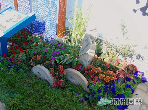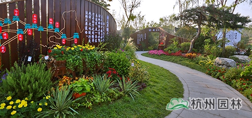 考慮到銀川的干燥氣候,垂直綠化墻植物的保濕成為難題?!罢憬瓐@”垂直綠化墻以無(wú)紡布為墻體材料,使用保濕性強(qiáng)的基質(zhì),優(yōu)選植物種類,同時(shí)搭配滴灌系統(tǒng),保證了綠化墻鮮花擁簇的景象。展園內(nèi)的垂直綠化墻設(shè)計(jì)簡(jiǎn)潔、曲線優(yōu)美,與以錢塘江文化為主題的背景墻相互映襯,共同展現(xiàn)了新時(shí)期浙江園林景觀的不斷發(fā)展與創(chuàng)新。