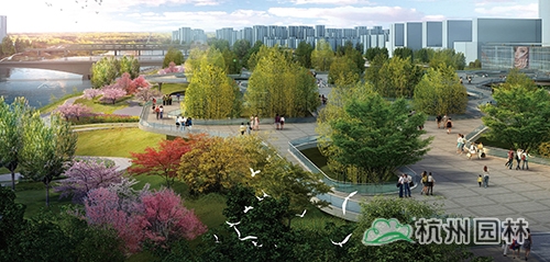 本區(qū)位于基地的東段,以健康生活、都市活力為主題,打造集文化藝術(shù)、生態(tài)景觀、娛樂休閑、健康生活為一體的城市水岸濕地。