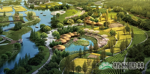 養(yǎng)生休閑主題區(qū):對原有的生產(chǎn)景觀保留改造,水稻田、葡萄園、油菜園、果園、苗圃以及可食用水生植物被布置其中,兼具經(jīng)濟(jì)與觀賞價值,結(jié)合水莊、竹庭、有機菜園,酒莊等休閑景點,推廣宣傳現(xiàn)代都市農(nóng)業(yè)。