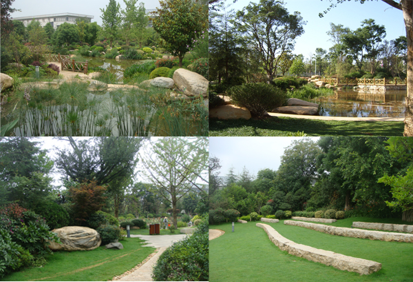 昆明市市級黨政機(jī)關(guān)辦公用房搬遷建設(shè)項(xiàng)目區(qū)內(nèi)景觀綠化工程(第三標(biāo)段),地處昆明市呈貢縣吳家營鄉(xiāng)小尖山西北附近,總面積101800㎡,工程包括硬質(zhì)景觀、綠化種植和水電工程,為大型綜合性園林景觀工程。綠軸D組團(tuán)內(nèi)的人工湖的施工,清香木、黃連木和山楂等特型樹的應(yīng)用,自然石汀步、老石板園路等生態(tài)型游步道的鋪裝,成為工程中最大的特色和亮點(diǎn)。漫步在林蔭小道上,呼吸著清新的空氣,聆聽著涓涓的流水聲,一幅綠意盎然、閑適愜意的生動(dòng)畫卷帶給人們更多關(guān)于自然的完美體驗(yàn)!