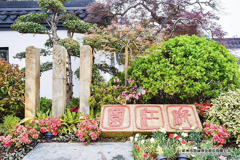 位于浙江園主入口西側(cè)的景觀小品“浙江印”,提煉自石鼓篆書第一人、西泠印社首任社長吳昌碩先生的書法作品,三方極具浙派篆刻風(fēng)格的印章上,“浙江園”三個(gè)字,干凈、利落,古樸、大氣。這幅美景的背后,是深化設(shè)計(jì)團(tuán)隊(duì)數(shù)次往返西泠印社,從無數(shù)的篆刻名家作品中挑選、比對,決定采用最能代表浙江篆刻藝術(shù)的吳昌碩先生字體,從中找出“浙”、“江”、“園”三個(gè)字,在設(shè)計(jì)圖中反復(fù)比對,調(diào)整位置、大小,最終確定下來。