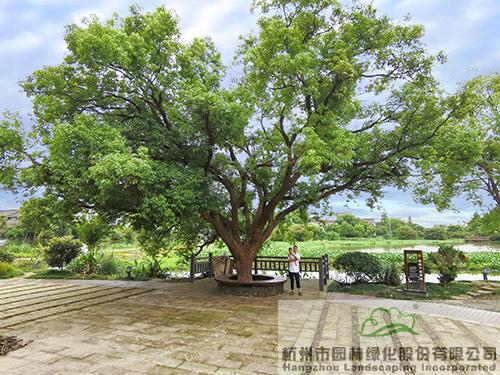 村前的小公園,是村民飯后散步、乘涼的好去處。用舊青磚搭配舊瓦片、老石板、老石磨等營(yíng)造的低矮景墻,在劃分空間的同時(shí),更成為一種懷舊情感的寄托,與白墻黑瓦的建筑遙相呼應(yīng),營(yíng)造出古樸、寧?kù)o的氛圍。幾株大香樟樹(shù)枝繁葉茂,灑下一地綠蔭,成為村民乘涼的好去處,它們陪伴村民走過(guò)了幾十年的風(fēng)雨,見(jiàn)證了村莊的發(fā)展變遷,寄托著村民的鄉(xiāng)愁。為了保護(hù)它們,施工時(shí)禁止大型機(jī)械進(jìn)場(chǎng),全部采用人工作業(yè),并在周邊進(jìn)行保護(hù),搭建防腐木樹(shù)池坐凳,既可以保護(hù)大樹(shù),又可供村民在此閑坐。植物配置充分考慮當(dāng)?shù)氐拿耧L(fēng)民俗,聽(tīng)取村民意愿,種植枇杷、桃樹(shù)、梨樹(shù)、蘋果樹(shù)、紅葉李、柿子樹(shù)等果樹(shù),搭配桂花、無(wú)患子、銀杏等鄉(xiāng)土樹(shù)種,營(yíng)造出濃郁的鄉(xiāng)村田園風(fēng)情。