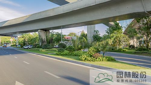 項(xiàng)目綠化施工主要包括道路分車帶、道路兩側(cè)帶狀綠地、節(jié)點(diǎn)綠地、高架橋垂直綠化等區(qū)塊。每個(gè)區(qū)塊根據(jù)其功能與特色,通過不同植物配置,營(yíng)造豐富景觀。