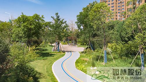 在道路鋪裝上,采用透水材料及新型施工技術(shù),并通過鋪裝材料、手法等的變化,營(yíng)造“步移景異”的鋪裝效果。如昆侖大道節(jié)點(diǎn)廣場(chǎng)景石前入口區(qū)域、景石后健身器材及樹池休憩區(qū)域主要采用50cm厚灰色透水磚,與廣場(chǎng)上零星散布的景石融為一體,營(yíng)造“看得見山、望得見水、記得住鄉(xiāng)愁”的枯山水意趣;廣場(chǎng)北側(cè)連接雨水花園處的小園路,用自然式疊石手法開辟出一條小型山路,使園路完美地融入雨水花園景觀;廣場(chǎng)東側(cè)文化景墻處采用50cm厚小青磚人字鋪、30cm厚不規(guī)則六邊形黑色片巖碎拼等手法,形成新中式風(fēng)格園林景觀。道路兩側(cè)分布的綠道,則采用藍(lán)色、灰色的透水混凝土材料,最大限度減少雨天對(duì)行人帶來的影響。風(fēng)雨過后,人們可以在綠道放心行走,呼吸清新的空氣,欣賞沿路的如畫風(fēng)景。