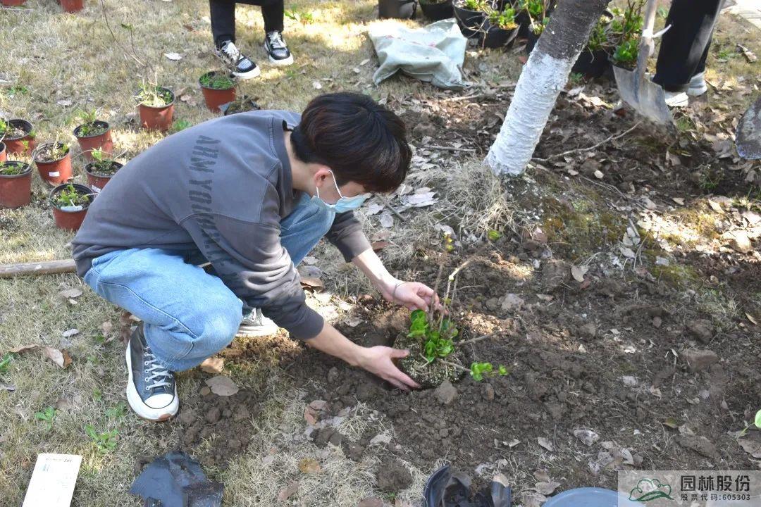 隨后,在老師們的帶領(lǐng)下同學(xué)們開(kāi)始親手栽種“幸?;ā?/p>