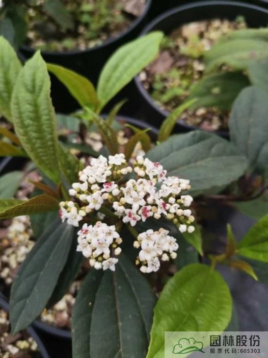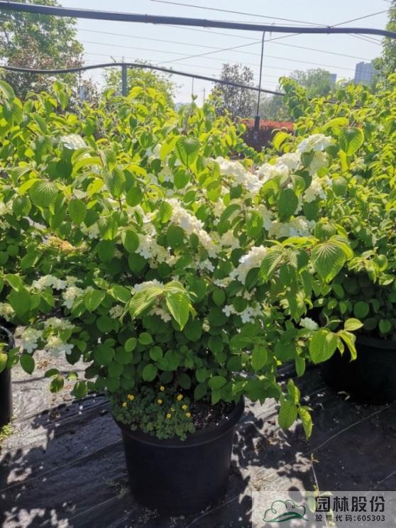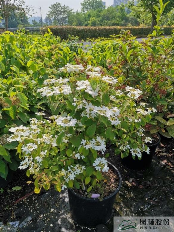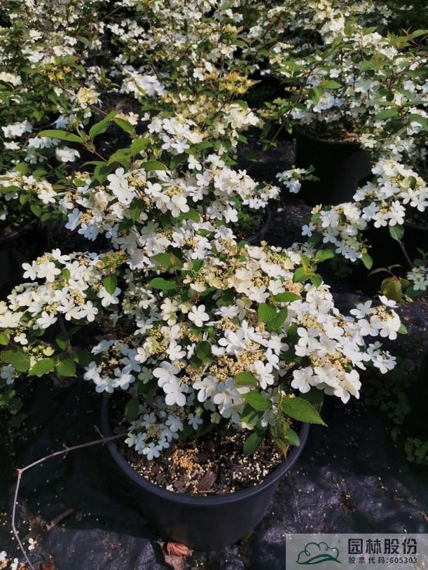 忍冬科莢蒾屬,落葉灌木,樹姿舒展?;ㄐ虬肭蛐危珵椴辉谢?,開花時滿樹白花猶如積雪壓枝,高潔素雅,花謝后則綠葉如碧,無論花葉均具有較好的景觀效果。生長強健,喜歡散射光環(huán)境,適合工程應用或庭院觀賞。