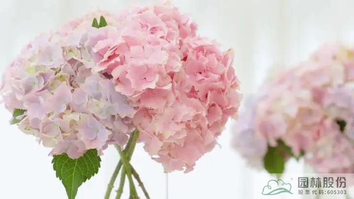 ▲園林股份自主選育的繡球‘落塵’(左)與‘紫之夢’(右)