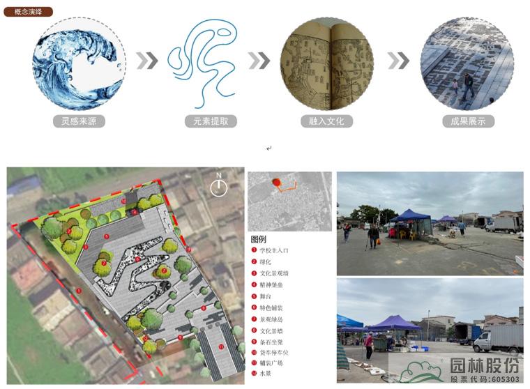 入口休閑廣場(chǎng)概念演繹設(shè)計(jì)說(shuō)明:現(xiàn)狀場(chǎng)地主要為一片空地,由于南面是菜場(chǎng),因此該場(chǎng)地在功能性上主要有貨車卸貨的功能,考慮村莊內(nèi)可能舉辦大型祭祀活動(dòng)或者紅白喜事,需要有大空間,所以在設(shè)計(jì)中留出了大片場(chǎng)地。因沿海城市,所以提取了海浪元素,結(jié)合當(dāng)?shù)貧v史文化及村落肌理,做出如圖設(shè)計(jì)。