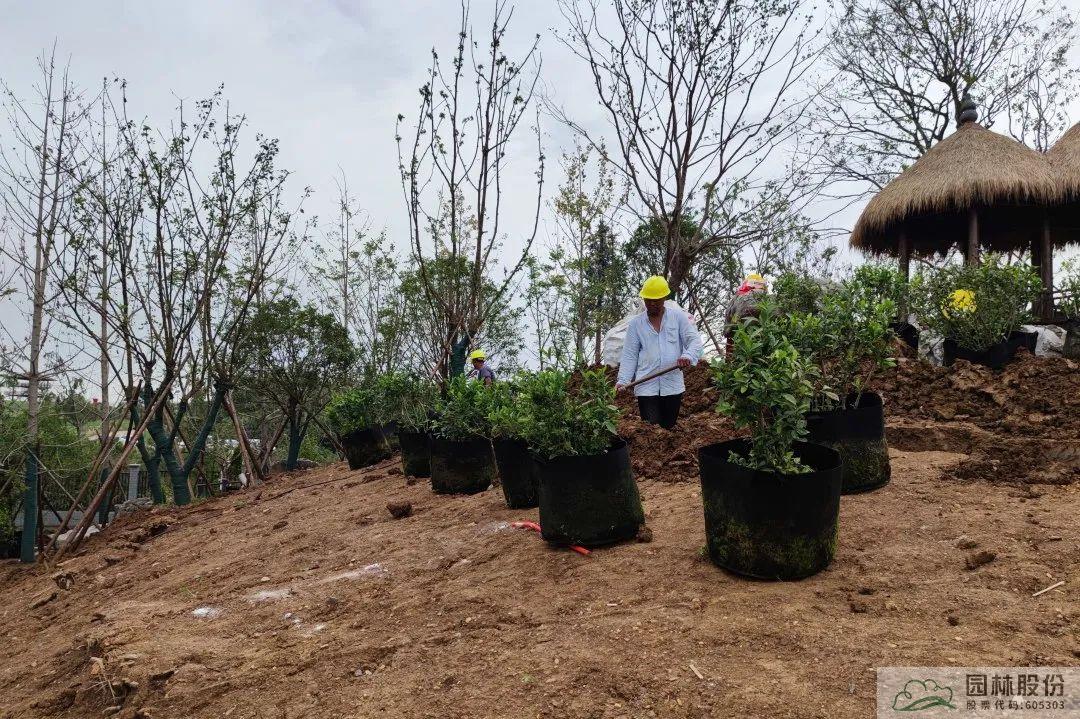 竹炭有機(jī)基質(zhì)主要是由竹纖維、有機(jī)氮肥、EM菌、生物炭、羊糞組合而成,經(jīng)過高溫發(fā)酵和堆肥腐熟,具有更輕質(zhì)、蟲卵雜草更少、疏松更透氣、性價比更高等優(yōu)勢,且竹炭資源可再生,生態(tài)環(huán)保。在全面綠化施工時,施工團(tuán)隊運(yùn)用竹炭有機(jī)基質(zhì)與回填土混合回填的方法種植喬木類,在地被植物方面則以竹炭有機(jī)基質(zhì)作為表層土平鋪。
