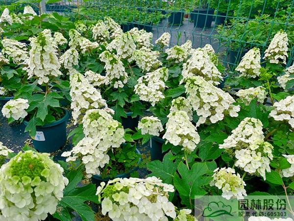 虎耳草科繡球?qū)伲淙~灌木;成株高度100-150 cm,成株冠幅 80-150 cm;葉片掌狀,長寬接近,3~7 裂;花期6-10 月,圓錐花序,花朵密集型,盛花時(shí)碩大醒目的花序可達(dá) 30 cm 以上,初期翠綠色,中后期花色逐漸轉(zhuǎn)白,秋季晝夜溫差大會(huì)使其逐漸暈染上粉紅色;老枝開花,成年植株花期觀賞效果極佳,花后修剪,平時(shí)只需修剪重疊枝、病殘枝即可,以免影響第二年開花;耐熱耐寒,喜溫暖和偏蔭蔽的環(huán)境,微酸性土壤;株型高大,枝條挺拔,樹冠寬闊豐滿,花球碩大;櫟樹一樣的掌狀葉片,到秋季會(huì)轉(zhuǎn)變?yōu)樯罴t色,紅葉期一般從每年的深秋至次年的5月,是一種既可觀花、又可賞葉的彩葉灌木。