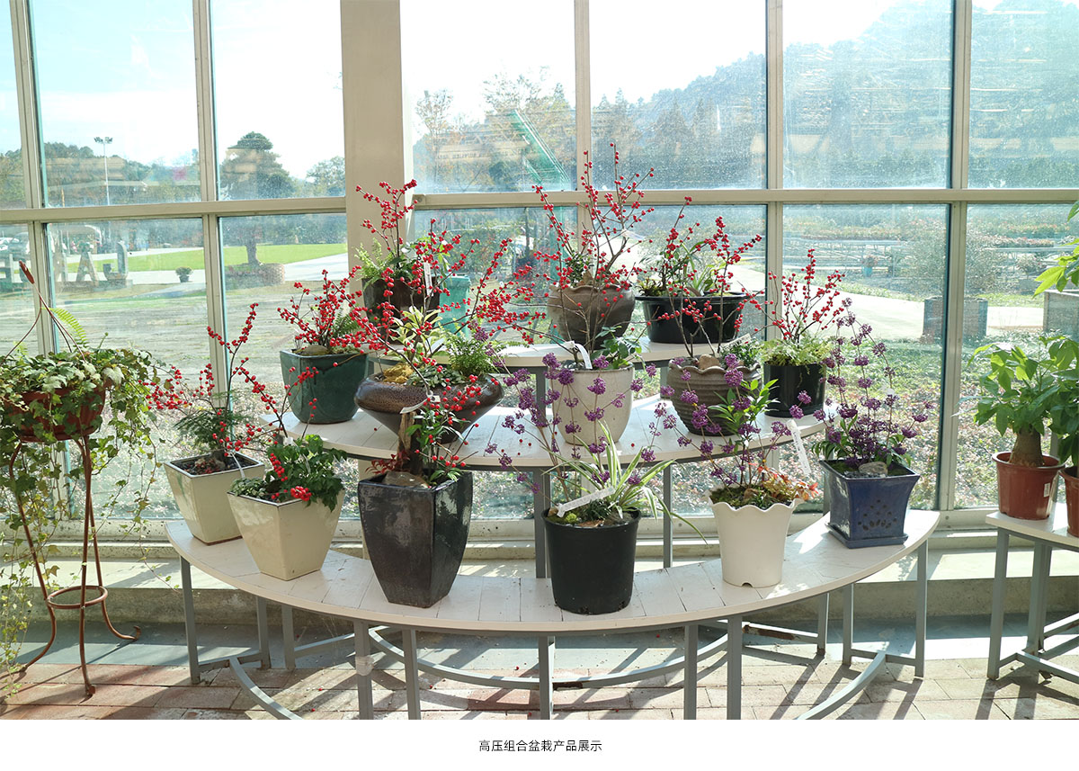 以容器育苗技術(shù)為基礎(chǔ),結(jié)合株型控制技術(shù)、高空壓條技術(shù)和花期調(diào)控技術(shù),對(duì)上百種園林植物進(jìn)行深度開發(fā),實(shí)現(xiàn)中大型植物小型化和多季開花的目的,有效提高了植物產(chǎn)品的附加值。
